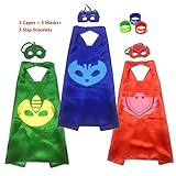 Sumbest Superhero Capes Masks Costume 3 Catboy Owlette Gekko Fancy Dress Up kits Costume Kit + 3 masks + 3 slap bracelets - Birthday Gifts and Party Supplies for Kids (3 sets)